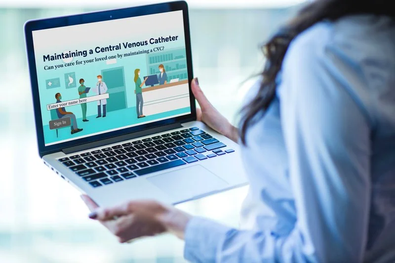 This featured project showcases an eLearning experience where you, as the caretaker, maintain a central venous catheter.